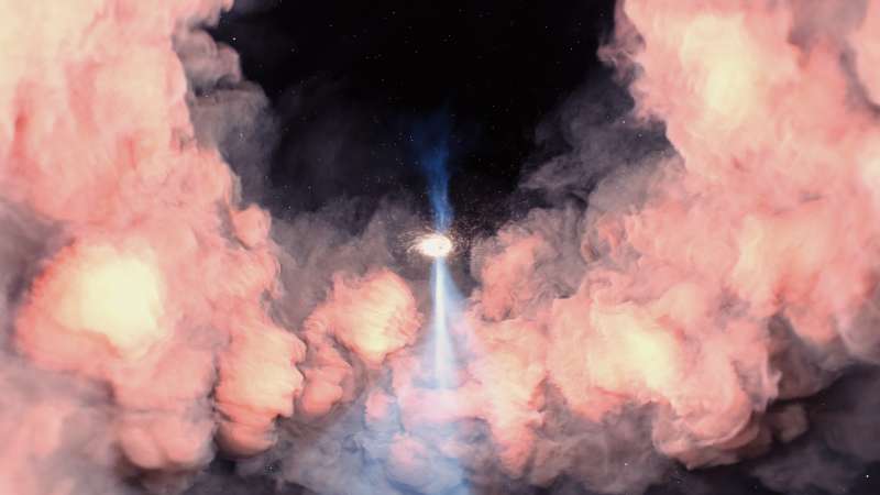 Die sogenannte Gezeitenkatastrophe ereignete sich in einer 4,4 Milliarden Lichtjahre entfernten Galaxie, in deren Zentrum ein Schwarzes Loch mit der 35-millionenfachen Masse unserer Sonne haust. Diesem Massemonster ist eine Riesensonne zu nahe gekommen und durch die Gezeitenkräfte des Schwarzen Lochs in Stücke gerissen worden. „Die Gezeitenkräfte entstehen, indem das Schwarze Loch an der Vorderseite des Sterns stärker zieht als an der Rückseite“, erläutert der Hauptautor der Veröffentlichung, Simeon Reusch von DESY. „Durch diese Differenz wird die Riesensonne zunächst in die Länge gezogen, bis sie schließlich zerreißt.“