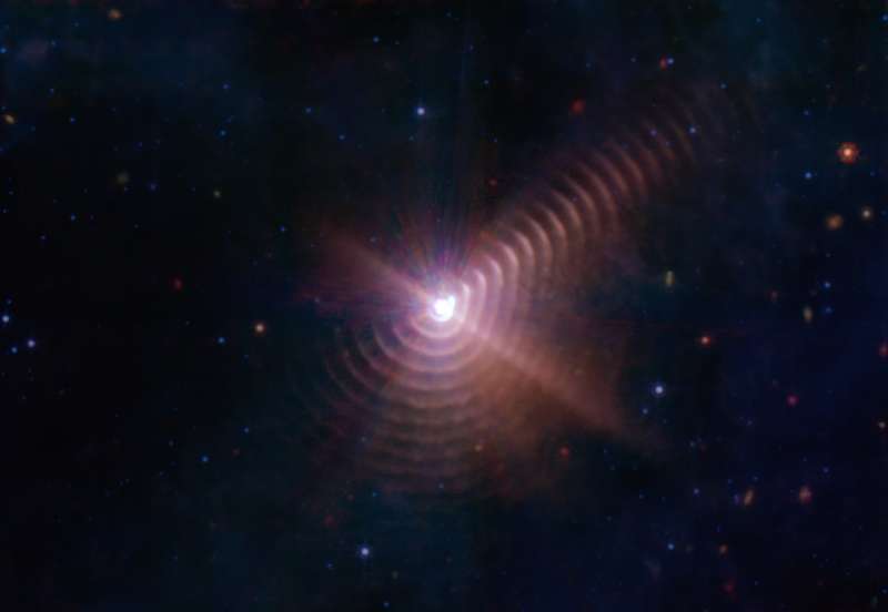 "Wir sehen die Staubproduktion über mehr als ein Jahrhundert in diesem System", sagt Ryan Lau, Astronom am NOIRLab der National Science Foundation, der erstautor einer neuen Studie über das System, die heute in der Fachzeitschrift „Nature Astronomy“ veröffentlicht wurde. "Das Bild zeigt auch, wie empfindlich das JWST ist. Früher konnten wir mit bodengebundenen Teleskopen nur zwei Staubringe sehen. Jetzt sehen wir mindestens 17 davon."