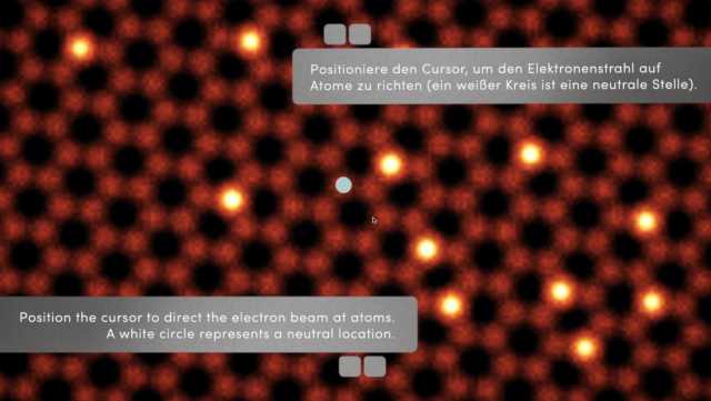 Zusätzlich zur Bildgebung kann der fokussierte Elektronenstrahl des Mikroskops zum Bewegen der Atome verwendet werden. Jedes Elektron dieses Strahls hat eine geringe Chance, vom Kern des anvisierten Atoms zurückgestreut zu werden. Dadurch erhält, wie frühere Ergebnisse der Forschungsgruppe um Toma Susi zeigen, das Atom einen kleinen Stoß in die entgegengesetzte Richtung. Der Elektronenstrahl scannt Zeile für Zeile über eine Graphenprobe und lässt dabei die Stellen der Kohlenstoffatome im Gitter als auch die helleren Silizium-Verunreinigungen erkennen. In der Praxis wird der Elektronenstrahl durch Bewegen eines Cursors auf einem Computerbildschirm gelenkt, der die Mikroskop-Elektronik steuert. "Tatsächlich spielen wir also ein Computerspiel, um unsere Forschung durchzuführen", erklärt Susi. Er fährt fort: "Ich habe viele Spiele gespielt, als ich jünger war, und ich bemerke, dass ich schneller bin als einige meiner jüngeren Kollegen, die eher an Touchscreens gewöhnt sind!"