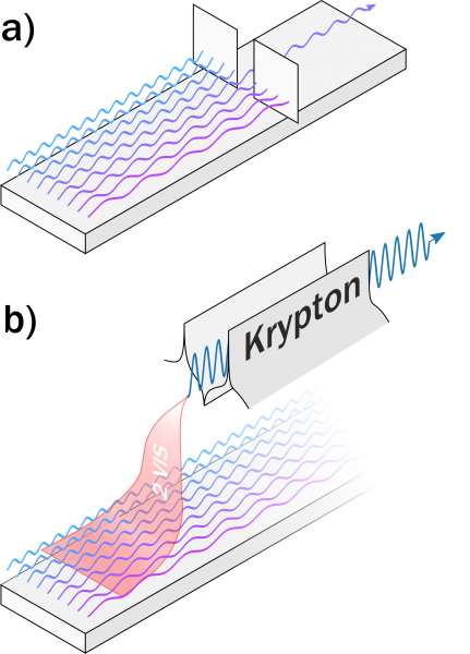Die Wissenschaftler haben dabei ein Schema verwendet, das als Vier-Wellen-Mischung bekannt ist. Dabei absorbiert ein Krypton-Atom zwei sichtbare Photonen und ein VUV-Photon, was zur Aussendung eines XUV-Photons führt. Aufgrund des Prinzips der Energieerhaltung muss die Frequenz des emittierten XUV-Photons der Summe der Frequenzen der drei absorbierten Photonen entsprechen. Außerdem besagt die Impulserhaltung, dass die Geschwindigkeit der eingehenden Welle der Geschwindigkeit der ausgesendeten Welle im Krypton-Jet entsprechen muss. Diese Geschwindigkeit ist frequenzabhängig und ändert sich sehr schnell in der Nähe einer atomaren Resonanz.