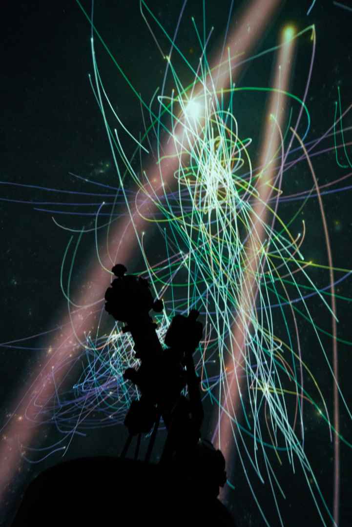 Die Ergebnisse dieser Simulation, die mithilfe von SuperMUC, einem der leistungsfähigsten Computer weltweit, errechnet wurden, lassen sich bildlich darstellen. Raumflüge durch den frühen Kosmos werden möglich und man kann zuschauen, wie sich Galaxien bilden – ideal für ein Fulldome-Planetarium, wo man nicht vor dem flachen Bildschirm sitzt, sondern direkt in die Szene geworfen wird und durch Raum und Zeit schwebt. Das Planetarium besitzt damit eine einzigartige Möglichkeit, solche wissenschaftlichen Daten erlebbar zu machen. In der neuen Planetariumsshow sind aber nicht nur die spektakulären Simulationen zu sehen, die künstlich erzeugten Raumflüge und Filmsequenzen werden auch immer wieder in Bezug gesetzt zu echten Aufnahmen aus dem Weltall.