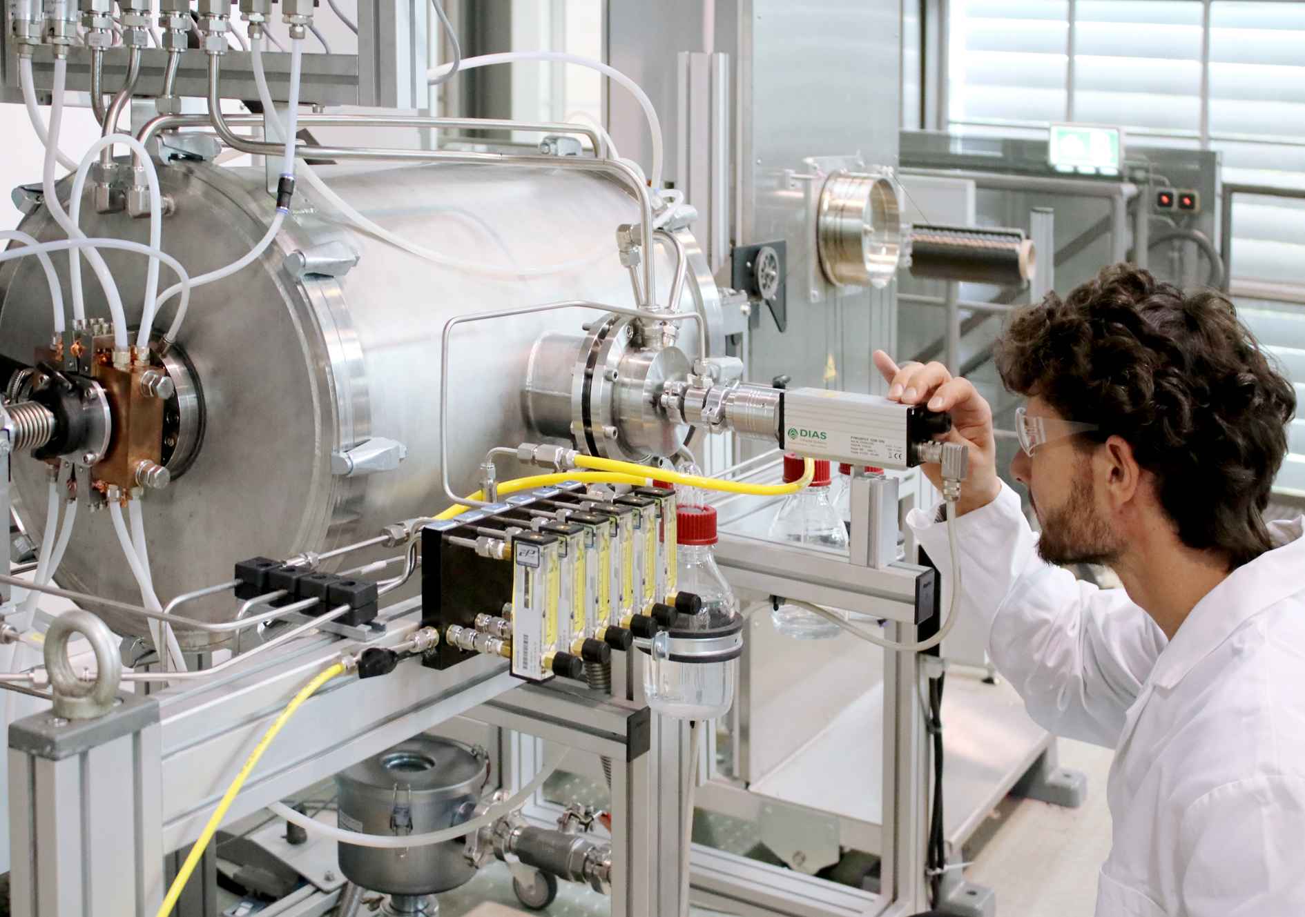 Bei 2900 °C werden am Fraunhofer IAP Bio-Fasern aus Cellulose graphitisiert. Sie erreichen die mechanischen Eigenschaften erdölbasierter Carbonfasern.