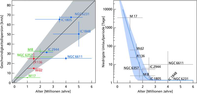 Durch die Kombination der Ergebnisse fanden die Wissenschaftler um Ramírez-Tannus eine Korrelation zwischen der Geschwindigkeitsdispersion massereicher Sterne in Haufen und deren Alter, was dafür spricht, dass die Dispersion innerhalb weniger Millionen Jahre schnell zunimmt. Daraus schließen die Astronomen, dass die Bahngeschwindigkeiten der Doppelsterne zunehmen, woraus zu schließen ist, dass die Bahnen entsprechend kleiner werden.