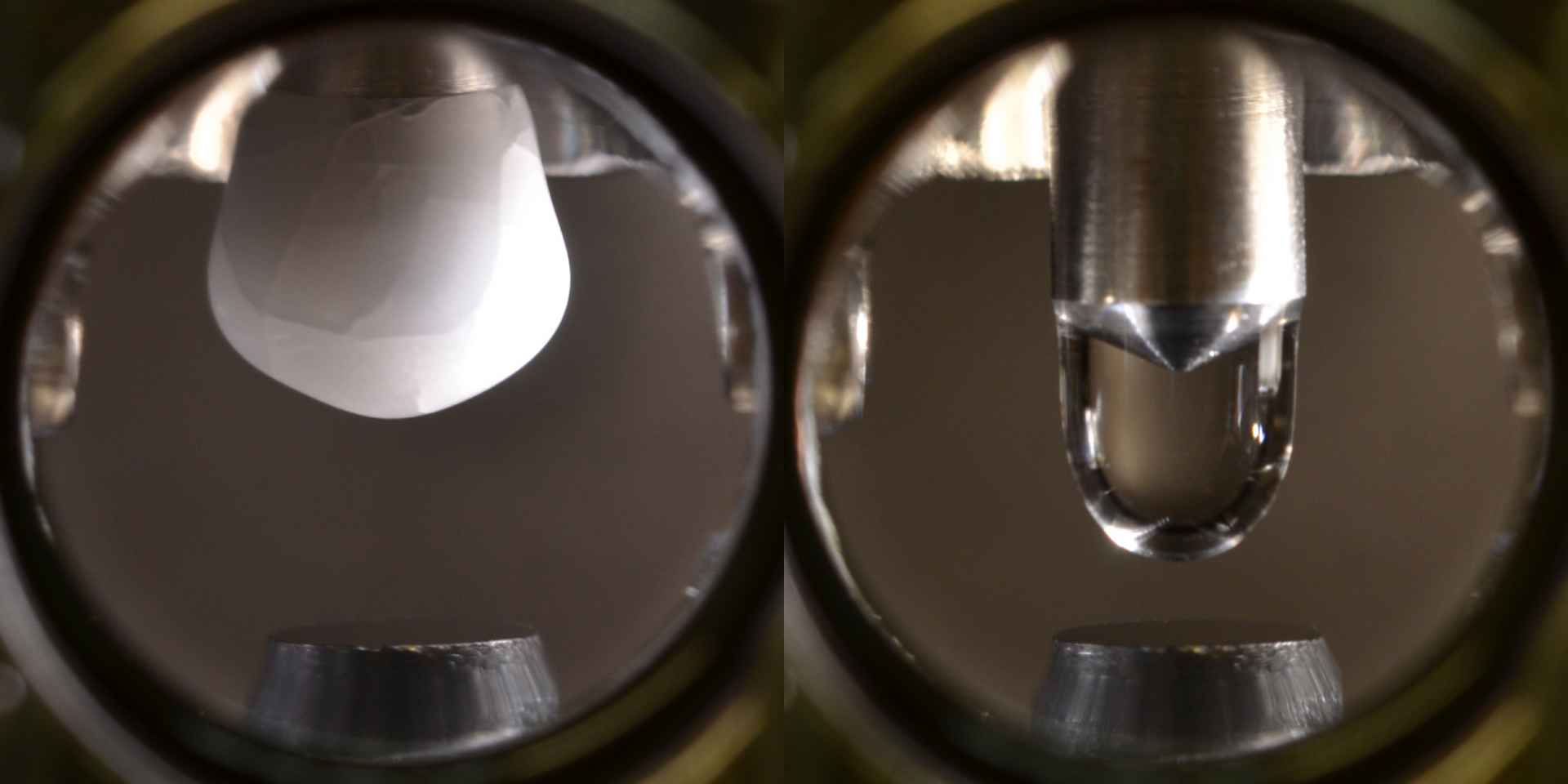 Man musste sich also eine clevere, neue Untersuchungsmethode ausdenken. Die Lösung war ein „Kühlfinger“, der in die Vakuum-Anlage eingebaut wurde. Die Spitze des gekühlten Metallstifts wird auf etwa -140°C abgekühlt, dann lässt man hochreinen Wasserdampf in die Kammer strömen. Die Wassermoleküle gefrieren an der Kühlfinger-Spitze, ein extrem sauberer kleiner Eiszapfen entsteht. Danach wird die Titanoxid-Probe eingebracht und die Metallspitze erwärmt, bis der Eiszapfen schmilzt und als extrem reiner Wassertropfen auf die Probe tropft.