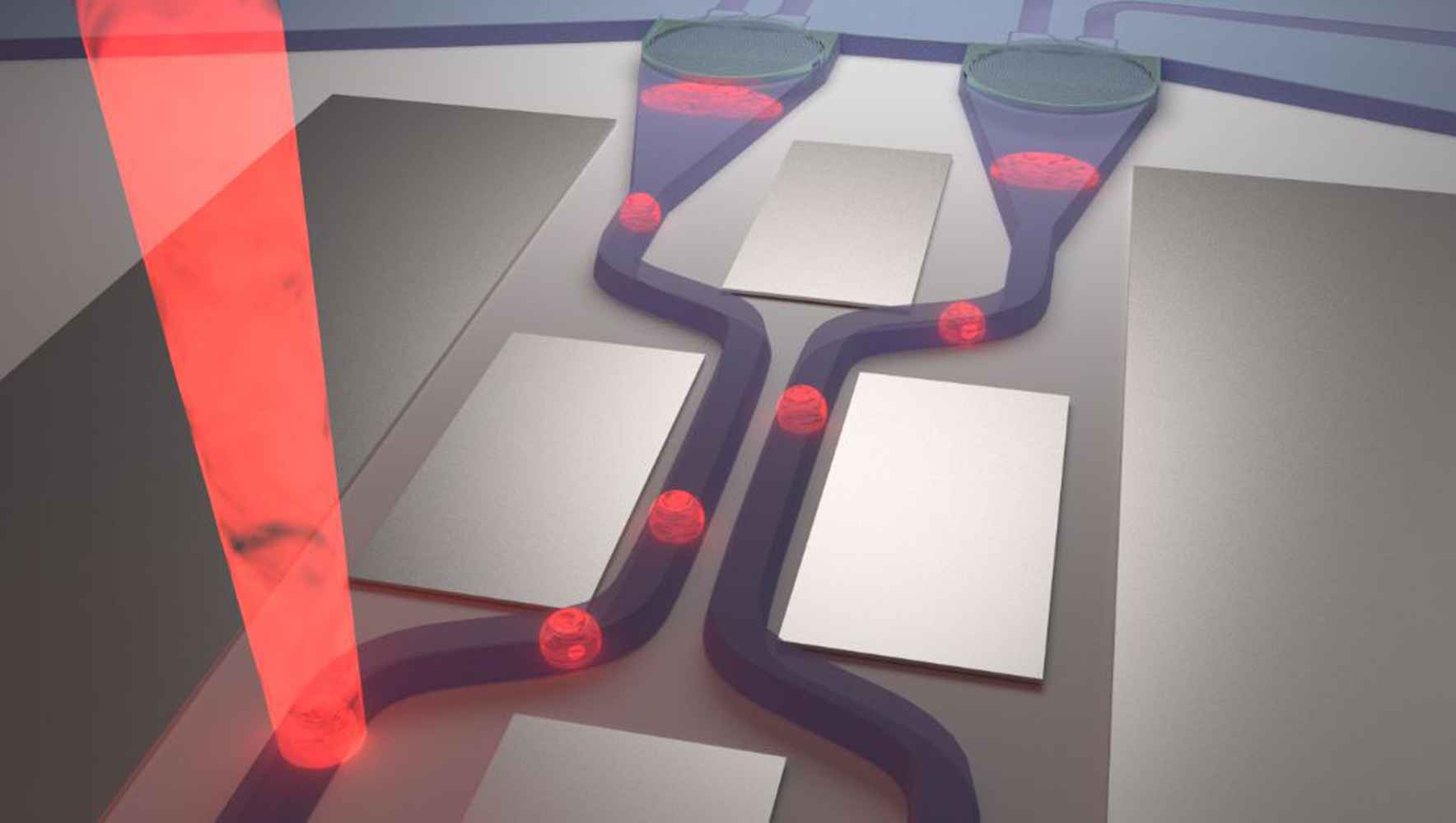 Quantencomputer sollen bestimmte Rechenprobleme einmal sehr viel schneller lösen können als ein klassischer Computer. Einer der vielversprechendsten Ansätze basiert dabei auf der Verwendung einzelner Photonen zur Übertragung und Verarbeitung von Quanteninformation. Wissenschaftlern der Universität Stuttgart und des Karlsruher Institutes für Technologie (KIT) ist es erstmals gelungen, drei notwendige Hauptkomponenten (Einzelphotonenquellen, Strahlteiler und Einzelphotonendetektoren) auf einem einzigen Chip zu integrieren und diesen auf dem Level einzelner Photonen zu betreiben.
