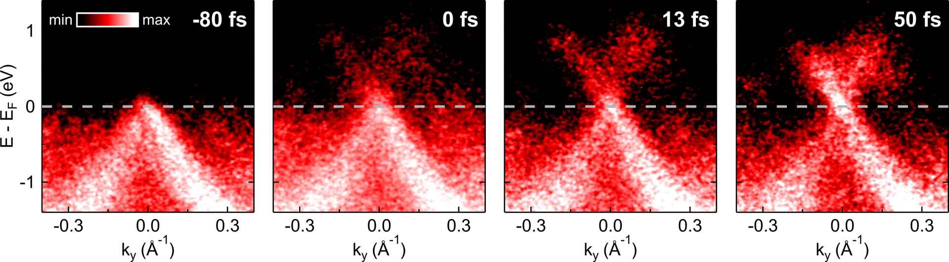 In ihrem aktuellen Experiment beschoss das Forscherteam eine Graphitprobe mit einem kurzen, intensiven Lichtimpuls von nur sieben Femtosekunden Dauer. Graphit zeichnet sich durch eine einfache elektronische Struktur aus. Grundlegende Prozesse sind so besonders eindeutig zu beobachten. Die auftreffenden Lichtteilchen, auch Photonen genannt, störten im Experiment das thermische Gleichgewicht der Elektronen. Dieses Gleichgewicht beschreibt einen Zustand, bei dem unter den Elektronen eine eindeutig definierbare Temperatur herrscht. Anschließend filmte das Kieler Forschungsteam das Verhalten der Elektronen bis ein Gleichgewicht nach ca. 50 Femtosekunden wiederhergestellt ist.