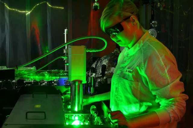 Welche Eigenschaften ein Material hat, hängt vom Verhalten seiner Elektronen und Atome im Inneren ab. Ein grundlegendes Modell zur Beschreibung des Verhaltens der Elektronen ist das Konzept des sogenannten Fermigases, benannt nach dem Physiknobelpreisträger Enrico Fermi. Hierbei werden die Elektronen im Material als gasförmiges System betrachtet. Auf diese Weise gelingt es, ihre Wechselwirkungen untereinander zu beschreiben. Um das Verhalten von Elektronen auf Basis dieser Beschreibung in Echtzeit zu verfolgen, entwickelte das Kieler Forschungsteam ein Experiment für Untersuchungen mit extremer Zeitauflösung: Wird eine Materialprobe mit einem ultraschnellen Lichtimpuls bestrahlt, werden die Elektronen im Inneren kurzeitig angeregt. Ein zweiter, zeitverzögerter Lichtimpuls löst einen Teil dieser Elektronen aus dem Festkörper heraus. Ihre detaillierte Analyse lässt Rückschlüsse auf die elektronischen Eigenschaften des Materials nach der ersten Lichtanregung zu. Eine spezielle Kamera filmt, wie die eingebrachte Lichtenergie sich über das Elektronensystem verteilt.
