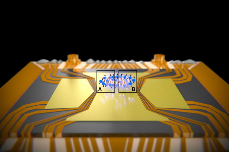 Im Experiment wurden Atome mithilfe von Lasern auf wenige milliardstel Grad über dem absoluten Nullpunkt gekühlt. Bei diesen Temperaturen verhalten sich die Atome vollkommen quantenmechanisch und bilden ein sogenanntes Bose-Einstein-Kondensat – ein Zustand der Materie, der in einer weiteren bahnbrechenden Arbeit von Einstein 1925 vorhergesagt wurde. In dieser ultrakalten Wolke stossen die Atome ständig zusammen, sodass sich ihre Spins miteinander verschränken.