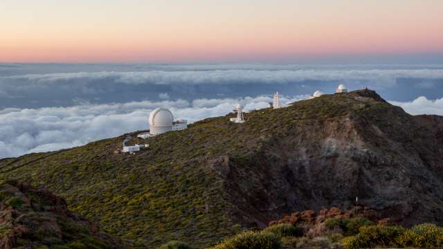 Der Aufbau der Kooperationspartner zur Vermessung des Erdmagnetfelds funktioniert zunächst ähnlich. Auf der Kanareninsel La Palma befindet sich nahe dem Observatorium'>Roque-de-los-Muchachos-Observatorium eine ESO-Lasereinheit. Von hier aus wird ein Laserstrahl in die Natriumschicht gelenkt und die Atome werden angeregt und zudem spinpolarisiert. Dies bedeutet, dass sie sich zu einem großen Teil in die gleiche Richtung ausrichten. Weil sie sich in einem Magnetfeld befinden, dreht sich der „Spin“ der Atome wie bei einem Kreisel, der schief steht, der sich also nicht genau senkrecht auf der Tischoberfläche dreht – was auch als Präzession bezeichnet wird. „Die Helligkeit des Leitsterns ist maximal, wenn wir mit der Laserfrequenz diese Natrium-Präzessionsfrequenz treffen, was wir von der Erde aus beobachten“, erläutert Pedreros Bustos. „Weil die Frequenz proportional zur Stärke des Magnetfelds ist, können wir mit dieser Methode das Erdmagnetfeld vermessen.“