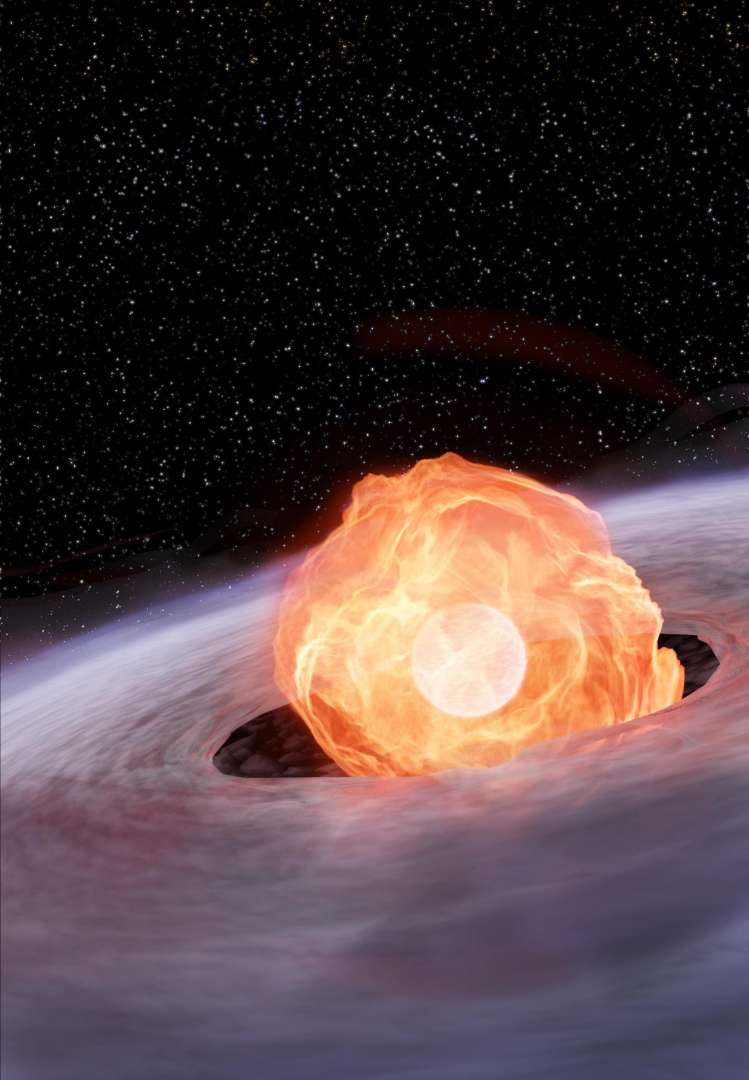 Illustration eines Feuerballs aus Röntgenstrahlung, auf einem sogenannten Weißen Zwerg.