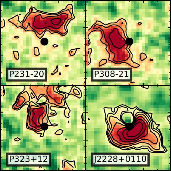 Die ersten Quasare existierten bereits wenige hundert Millionen Jahre nach dem Urknall. Wie diese Schwarzen Löcher jedoch in der kurzen Zeit seit den ersten Sternen zu solch großen Massen anwachsen konnten, ist eines der größten Rätsel der Astronomie. Zudem bilden die Wirtsgalaxien dieser Quasare neue Sterne mit einer 100-mal höheren Rate als die Milchstraße und andere nahe Galaxien. Simulationen wie Illustris TNG lassen Astronomen vermuten, dass dafür ständig enorme Mengen an Gas aus dem intergalaktischen Medium nachgeliefert werden, so dass die Wirtsgalaxien der jungen Quasare in Wolken aus Wasserstoffgas eingehüllt sein sollten. Bisher wurden nur eine Handvoll Quasare auf diese Weise untersucht. In einem Anfang des Jahres veröffentlichten Artikel kartierte eine Gruppe von Wissenschaftlern unter der Leitung von Alyssa Drake vom Max-Planck-Institut für Astronomie (MPIA) nennenswerte Gasmengen um vier ferne Quasare.
