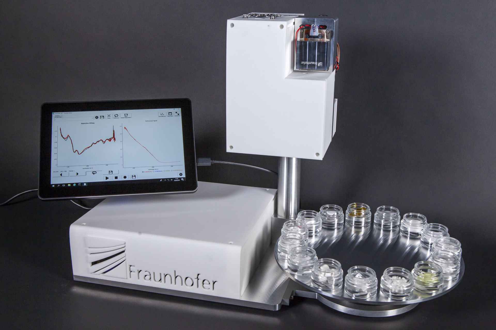 Insbesondere im Bereich der Pharma- und Lebensmittelproduktion ist eine kontinuierliche Überwachung der Inhaltsstoffe unverzichtbar. Üblicherweise erfolgt diese über eine Probenentnahme und eine Untersuchung im Labor per Chromatographie oder Spektrometer. Allerdings ist dieses Verfahren aufwendig und erlaubt lediglich eine stichprobenartige Kontrolle. Am Fraunhofer IAF haben Forscher ein Messsystem entwickelt, das eine Qualitätskontrolle in Echtzeit ermöglicht. Es identifiziert bereits kleinste Mengen von Stoffen anhand ihrer molekularen Zusammensetzung.
