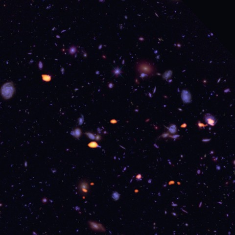 Schon seit kurz nach dem Urknall haben Galaxien in unserem Kosmos neue Sterne gebildet. Allerdings hat sich die Gesamt-Sternentstehungsrate über die Milliarden Jahre durchaus verändert, und in einigen Epochen war unser Kosmos ungleich produktiver als in anderen. Auf der Spur dieser Geschichte haben Fabian Walter vom Max-Planck-Institut für Astronomie und seine Kollegen sich daran gemacht, mithilfe des ALMA-Observatoriums herauszufinden, wie viel an Rohmaterial für die Sternentstehung, sprich: wie viel molekularer Wasserstoff den Galaxien zu unterschiedlichen Epochen denn überhaupt zur Verfügung stand. Die Astronomen haben dazu eine der am besten untersuchten Himmelsregionen überhaupt beobachtet: das Hubble Ultra Deep Field (HUDF).