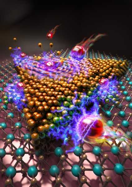 Die hochgeladenen Ionen treffen mit hoher Geschwindigkeit auf den winzigen Goldnuggets auf – mit rund 500 Kilometern pro Sekunde. Trotzdem ist es bemerkenswerterweise nicht die Wucht des Einschlags, der die Gold-Inseln verändert. Der Prozess läuft völlig anders ab als der Einschlag eines Golfballs in einem Sandhaufen, oder der versehentliche Einschlag eines Tennisballs in einer hübsch dekorierten Geburtstagstorte.