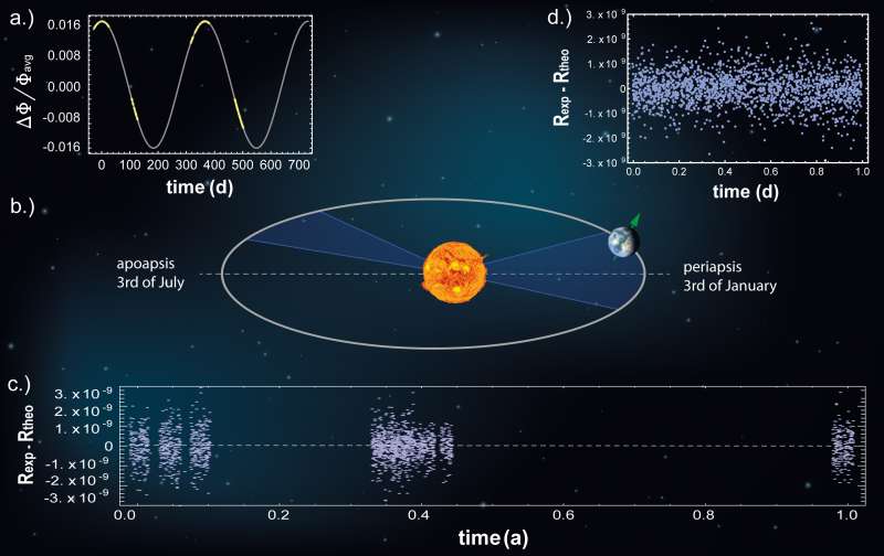 Ein Teilchen, das in einer Penning-Falle schwingt, kann man als „Uhr“ betrachten, ein Antiteilchen als „Anti-Uhr“. Bei starker Gravitation gehen die Uhren langsamer. Während der Langzeitmessung von eineinhalb Jahren war die Erde auf ihrer elliptischen Bahn unterschiedlich starker Anziehungskraft der Sonne ausgesetzt. Falls Antimaterie und Materie verschieden auf Schwerkraft reagierten, würden die Materie- und Antimaterie-Uhren entlang der Flugbahn der Erde unterschiedliche Frequenzverschiebungen erfahren. Die BASE-Wissenschaftler konnten bei der Analyse ihrer Daten aber keine derartige Frequenzanomalie feststellen. So konnten sie erstmals direkte und weitgehend modellunabhängige Grenzen für ein anomales Verhalten von Antimaterie unter Schwerkraft setzen – oder anders ausgedrückt: im Rahmen der Messgenauigkeit die Gültigkeit des schwachen Äquivalenzprinzips für Uhren bestätigen.