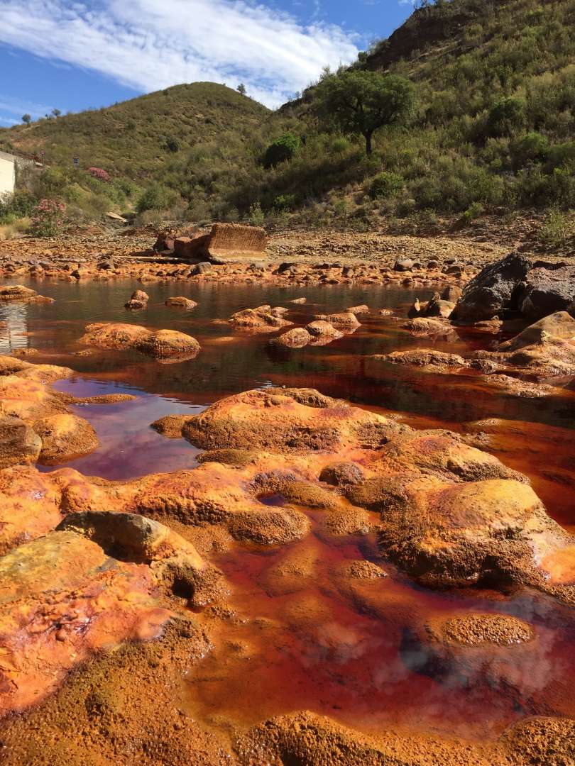 Der Rio Tinto – auf Deutsch „Roter Fluss“ – trägt seinen Namen zu Recht: Stellenweise leuchtet der etwa 100 Kilometer lange Fluss in der spanischen Provinz Huelva prächtig orange bis blutrot. Warum sein Wasser so sauer ist und seine Mündung zu einem der am stärksten mit giftigen Metallen belas-teten Wassersysteme der Welt gehört, ist bis heute nicht geklärt.