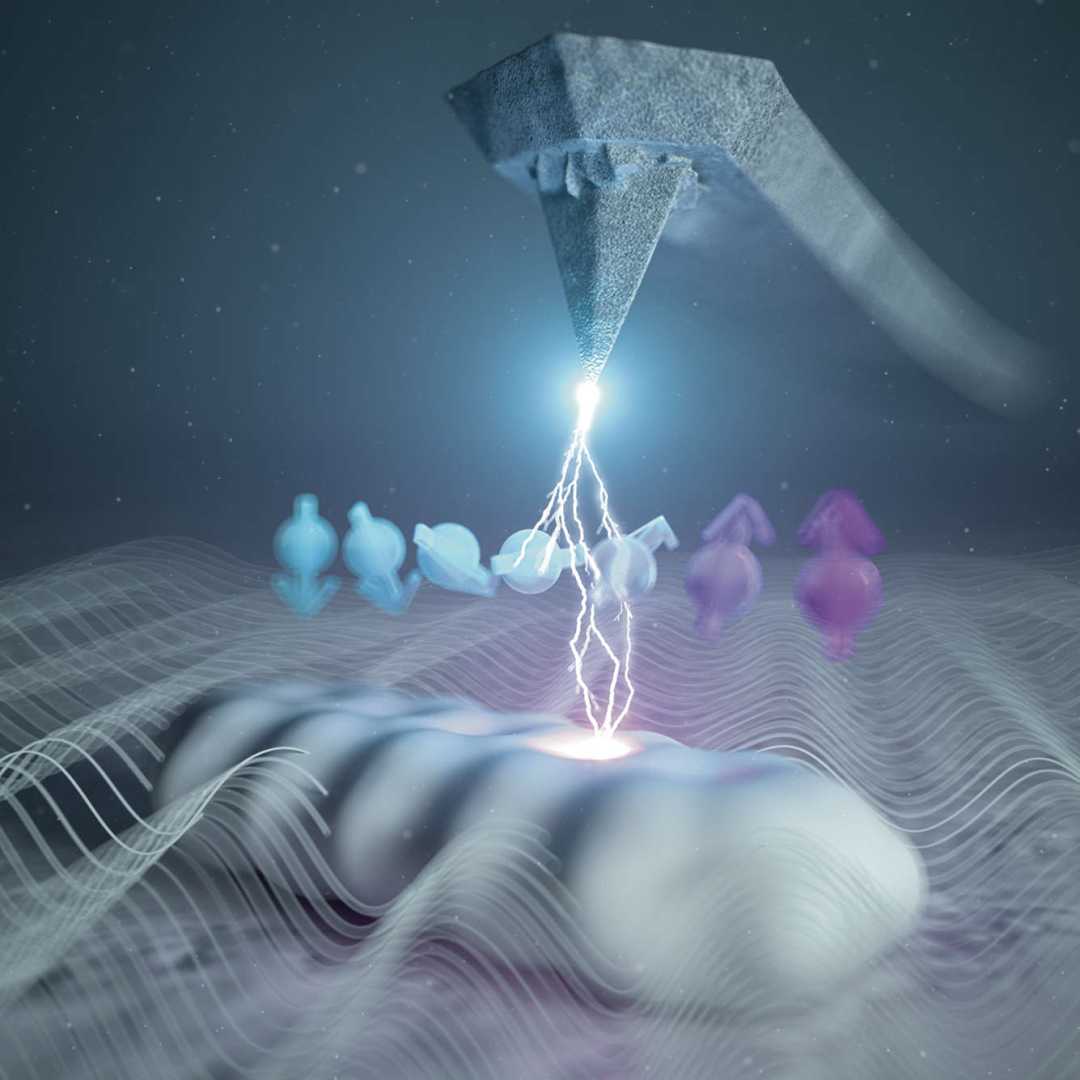 Physikerinnen und Physiker der Universität Regensburg haben einen Weg gefunden, den Quantenzustand einzelner Elektronen mit einem atomar auflösenden Mikroskop zu manipulieren.