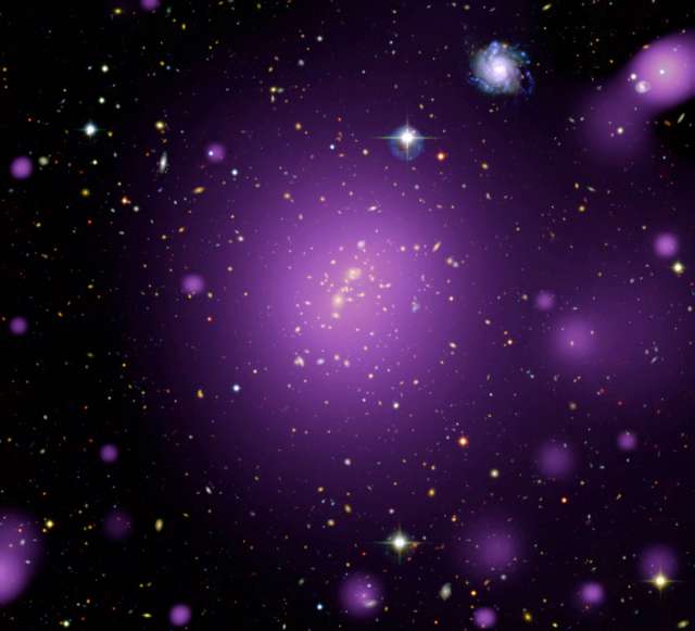 An manchen Stellen war dieser Nebel etwas dichter als an anderen. Von dort gingen daher etwas höhere Gravitationskräfte aus, die die Materie aus ihrer Umgebung zu sich heran zogen. Mit der Zeit konzentrierte sich an diesen Kondensationspunkten mehr und mehr Materie. Der Raum zwischen ihnen wurde dagegen leerer und leerer. So entstand innerhalb von gut 13 Milliarden Jahren eine Art Schwammstruktur: große materiefreie „Löcher“, dazwischen Bereiche, in denen sich auf engem Raum Tausende von Galaxien tummeln, so genannte Galaxienhaufen oder -cluster.