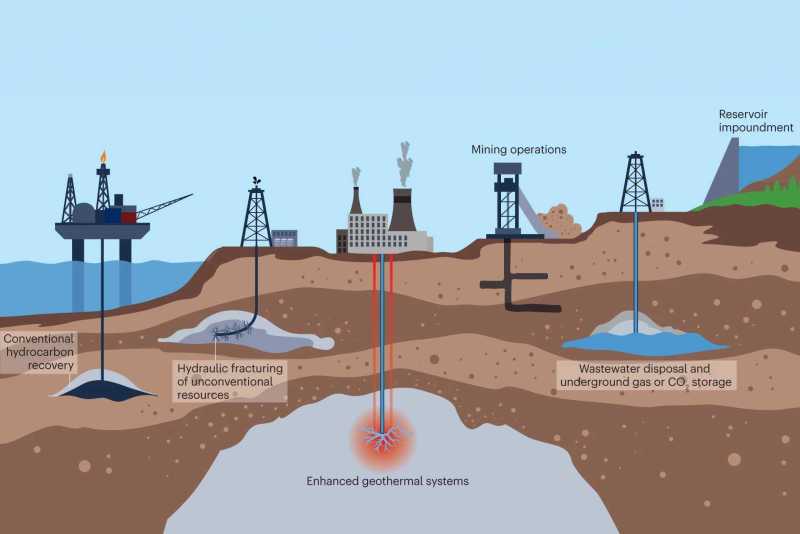 In Zusammenarbeit mit internationalen Kolleginnen und Kollegen untersuchen die Forschenden Dr. Mohammad Moein, Dr. Cornelius Langenbruch und Prof. Dr. Serge Shapiro der Freien Universität Berlin Erderschütterungen, die bei der konventionellen Kohlenwasserstoffgewinnung, beim hydraulischen Fracking unkonventioneller Kohlenwasserstoffreservoire, bei der Entwicklung von tiefen geothermischen Systemen, bei Bergbaubetrieben, der unterirdischen Salzwasserentsorgung oder bei unterirdischen Gas- oder Co2-Speichervorgängen verursacht werden können. Das Team fand heraus, dass Erdbeben, die durch Flüssigkeitsinjektionen und -extraktionen ausgelöst werden, hauptsächlich durch Spannungsänderungen an präexistierenden tektonisch belasteten Bruchflächen entstehen.