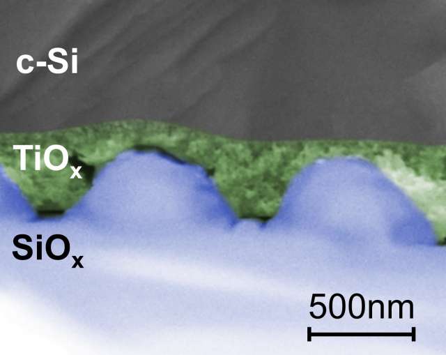 Das Verfahren besteht aus mehreren Schritten: Zunächst stempeln die Forscher eine optimierte Nanostruktur auf eine noch flüssige Siliziumoxid-Vorläuferschicht, die im Anschluss ausgehärtet wird. Dabei handelt es sich um winzige, regelmäßig angeordnete, zylinderförmige Erhöhungen, die sich Licht "einfangen" und damit in die Solarzelle leiten. Allerdings wirken sich diese Strukturen ungünstig auf die elektronische Materialqualität der Solarzelle aus. Denn auf der rauen Oberfläche kann die absorbierende Schicht aus kristallinem Silizium nicht fehlerfrei aufwachsen. Um diesen Konflikt aufzulösen, wird in einem weiteren Schritt eine sehr dünne Schicht aus Titanoxid aufgeschleudert. Dadurch werden die Vertiefungen zwischen den Zylindern ausgefüllt, so dass eine relativ glatte Oberfläche entsteht, auf der das eigentliche Absorbermaterial gut aufgebracht werden kann.