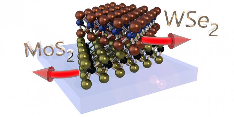 Regensburger Physiker um Dr. Tobias Korn, Institut für Experimentelle und Angewandte Physik der Universität Regensburg, haben in einer internationalen Kollaboration mit Forschern der TU Dresden und der Columbia University in New York atomar dünne Heterostrukturen aus den zweidimensionalen Materialien Molybdändisulfid (MoS2) und Wolframdiselenid (WSe2) untersucht und herausgefunden, dass sich die Ladungsträger (Elektronen und Löcher) in einer solchen Struktur nicht, wie bisher angenommen, komplett voneinander trennen, sondern sich teilweise in beiden Materialien gleichzeitig aufhalten.