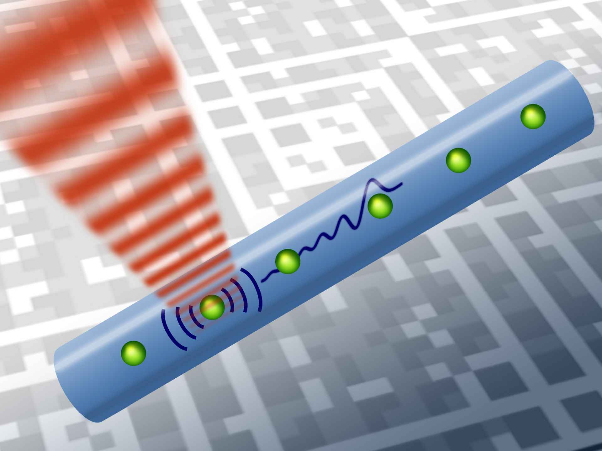 „Licht besteht aus Photonen, den Quanten des Lichts. Und genauso lassen sich auch mechanische Schwingungen oder Schallwellen quantenphysikalisch beschreiben: Sie bestehen aus den sogenannten Phononen, den kleinstmöglichen Einheiten von mechanischen Schwingungen“, erklärt Peter Rabl. Sich die Wie das Forschungsteam nun mit Hilfe von Simulationsrechnungen zeigen konnte, lassen sich mit Hilfe dieser Phononen beliebige Quanten-Speicher im Diamantstäbchen miteinander verbinden. Dazu werden die einzelnen Siliziumatome durch Mikrowellen „ein- und ausgeschaltet“. Sie geben dabei Phononen ab oder nehmen Phononen auf. Damit kann man eine Quanten-Verschränkung unterschiedlicher Silizium-Fehlstellen erzeugen und Quanteninformation übertragen.