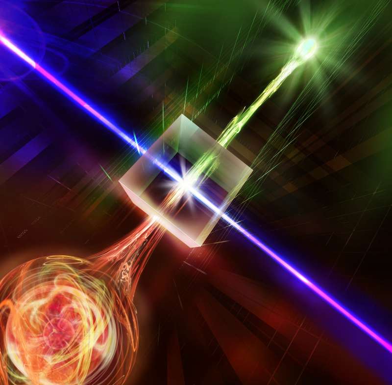 Lanyons Team nutzte ein in einer Ionenfalle gefangenes Kalziumatom als Ausgangspunkt für das Experiment. Mit Laserstrahlen schreiben die Forscher einen Quantenzustand in das Ion ein und regen es gleichzeitig zur Aussendung eines Photons an, in dessen Polarisation Quanteninformation gespeichert ist. Die Quantenzustände des Atoms und des Lichtteilchens werden dabei verschränkt. Die Herausforderung besteht nun darin, das Photon durch Glasfaserkabel zu übertragen. „Denn das vom Kalziumion emittierte Photon besitzt eine Wellenlänge von 854 Nanometern und wird vom Glasfaserkabel sehr rasch absorbiert“, erklärt Ben Lanyon.