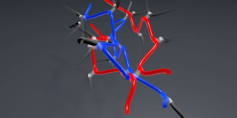 Professor Holger Fehskes Arbeitsgruppe von der Universität Greifswald befasst sich mit dem abstrakten Verhalten komplexer Quantensysteme. Die Idee seines Teams, den quantenmechanischen Spin als Eigenschaft dem Medium aufzuprägen, faszinierte den experimentellen Physiker Szameit: „Prinzipiell braucht man nur ein Material, bei dem sich die Atomabstände sprunghaft zu bestimmten Zeiten ändern.“ Szameit schmunzelt: „So etwas gibt es natürlich nicht.“ Das Problem löste sein Doktorand Lukas Maczewsky. Er hat die erforderliche zeitliche Veränderung des Materials in eine räumliche Struktur übersetzt, durch die die Photonen mit Lichtgeschwindigkeit rasen. „Genau zu dem Zeitpunkt, zu dem sich die Atomstruktur sprunghaft ändern müsste, haben wir das Licht gezwungen, sich in Lichtwellenleitern um die Kurve zu bewegen und sich dann bis auf eine kritische Distanz zu nähern. Genau dort kann das Licht für eine sehr kurze Zeit wechselwirken“, erläutert Lukas Maczewsky die Überlegung.