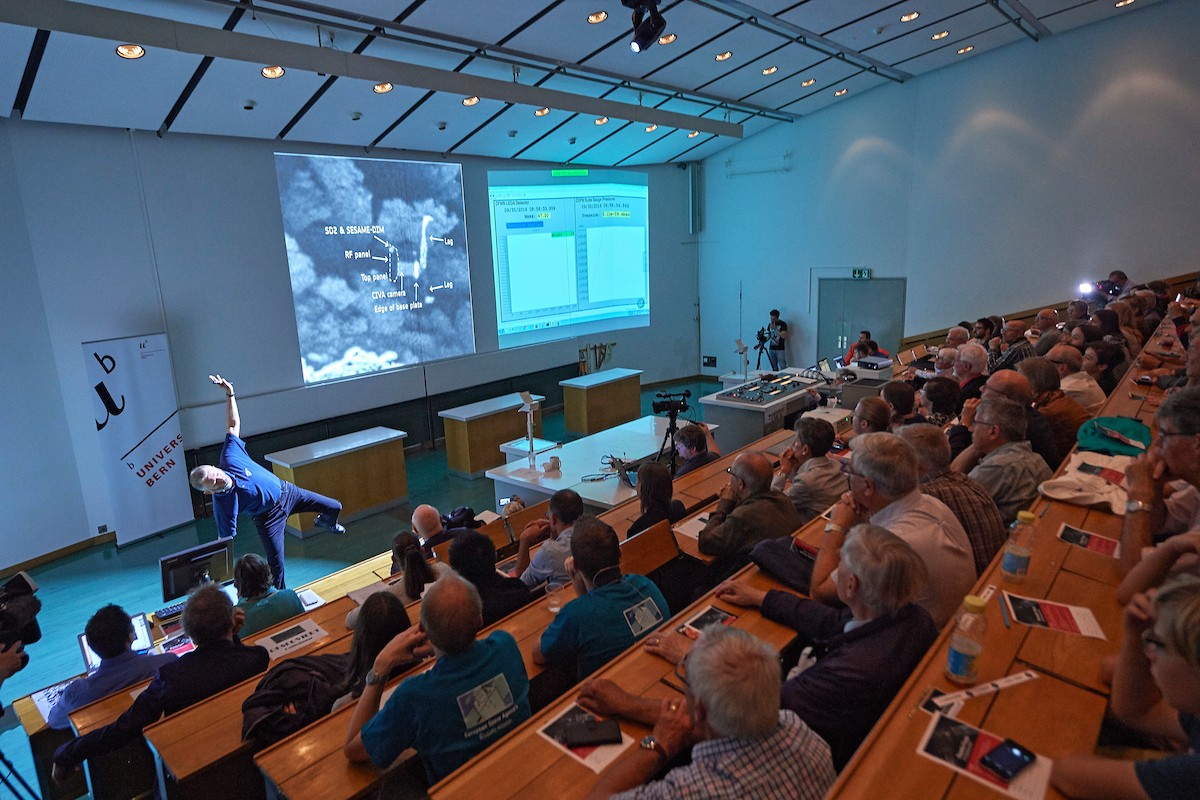 Der erfolgreiche Abschluss wurde auch in Bern gefeiert und mitverfolgt – mit einer Liveübertragung des „Rosetta Finales“ aus der ESA-Zentrale in Darmstadt, mit Rückblicken auf die Höhepunkte der Mission und einem Wettbewerb. Beim Anlass waren nebst den Projektbeteiligten – darunter solchen der ersten Stunde – von der Universität Bern auch die Vizerektoren Bruno Moretti und Daniel Candinas anwesend, zudem Gäste vom Bund und aus der Industrie sowie zahlreiche „Rosetta-Fans“.