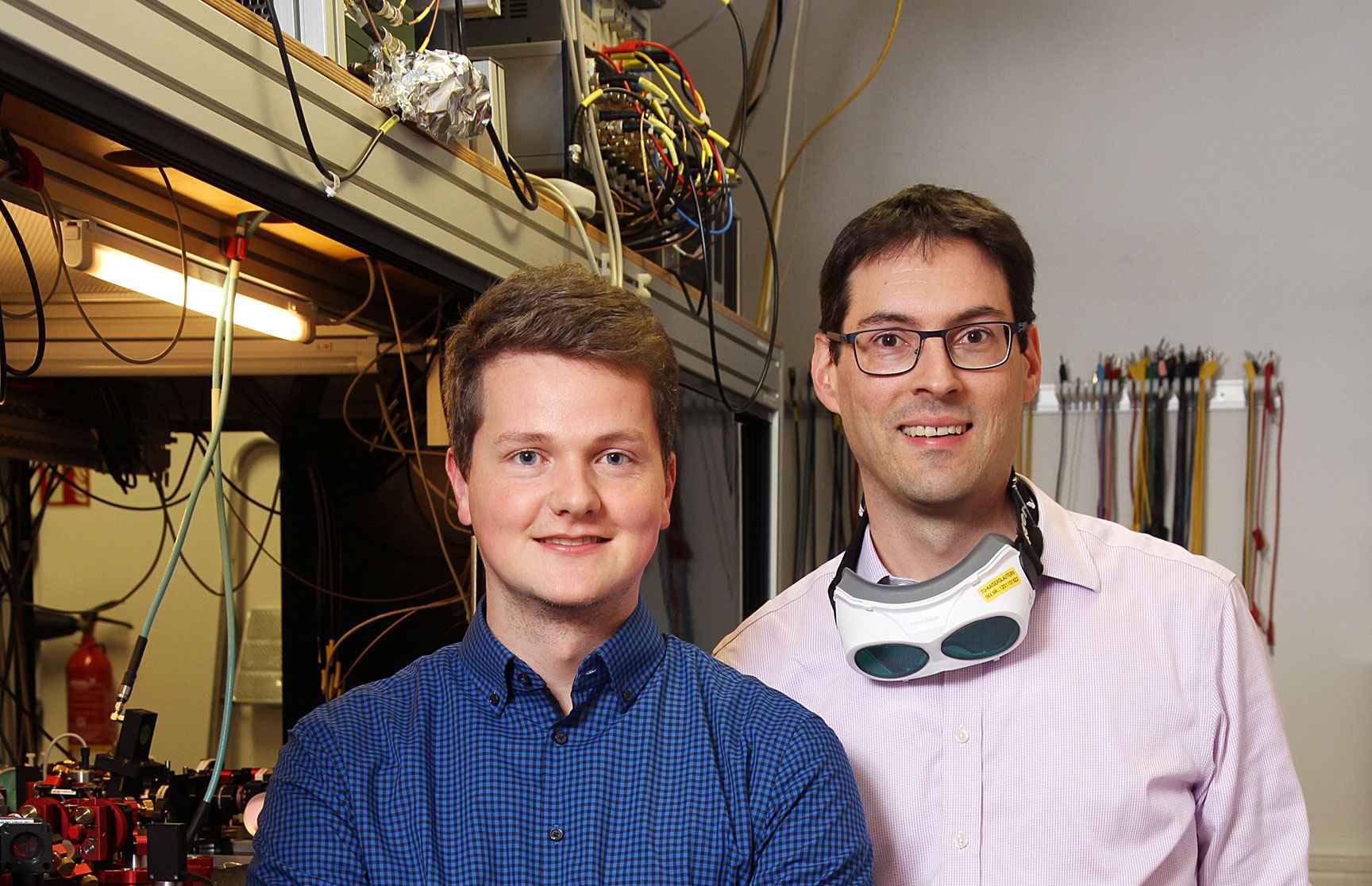 Die beiden Physiker Professor Dr. Artur Widera (rechts) und sein Doktorand Felix Schmidt erforschen Quantensysteme.