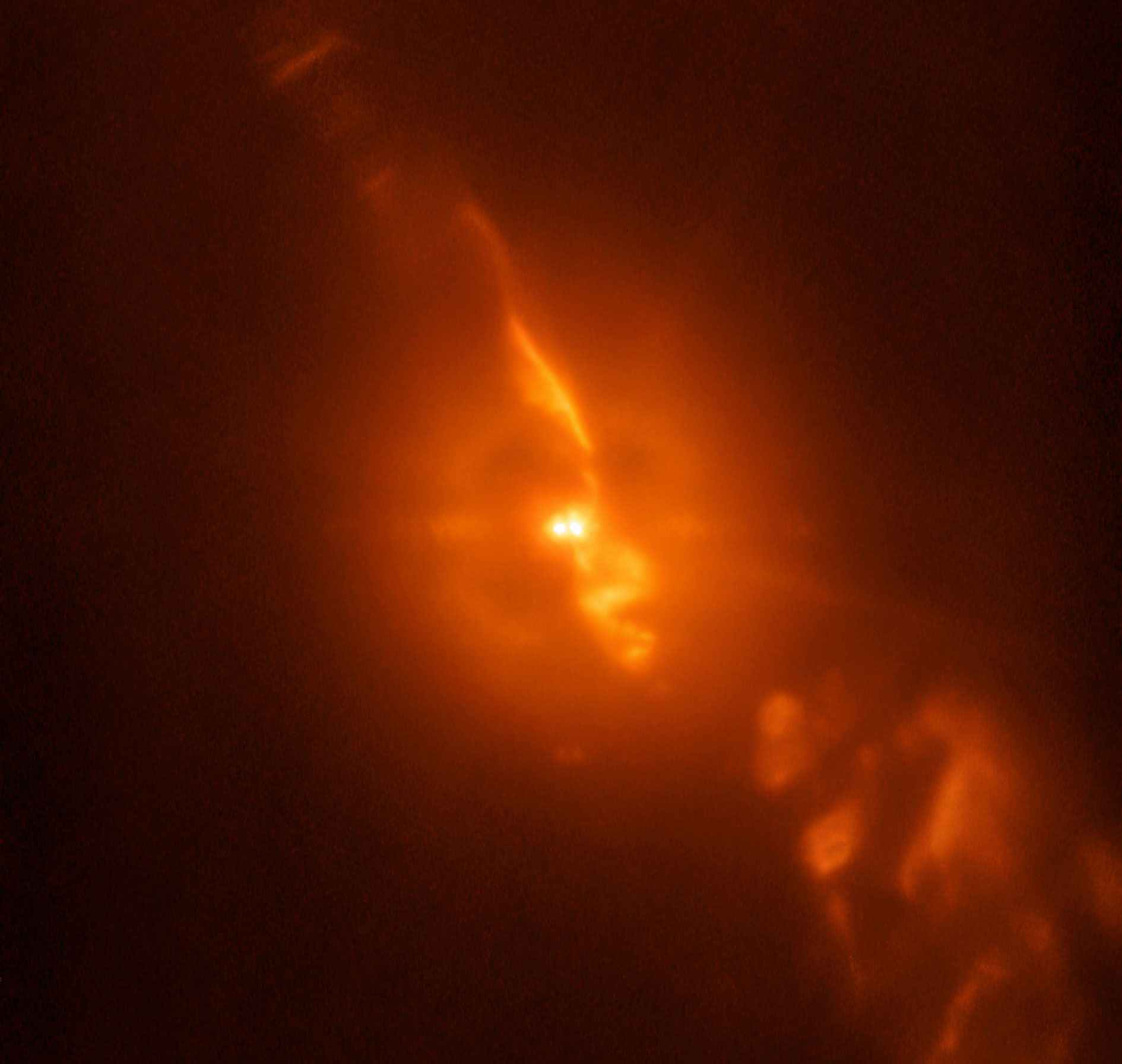 Dieses spektakuläre Bild – die zweite Folge der R Aquarii-Woche der ESO – liefert detaillierte Einblicke in das dramatische Sternenduo, den Doppelstern R Aquarii. Obwohl die meisten Doppelsterne durch die Schwerkraft einen eleganten Walzer aufführen, ist die Beziehung zwischen den Sternen von R Aquarii weit weniger friedlich. Trotz seiner winzigen Größe entzieht der kleinere der beiden Sterne dieses Paares seinem sterbenden Begleiter – einem Roten Riesen – ständig Material.