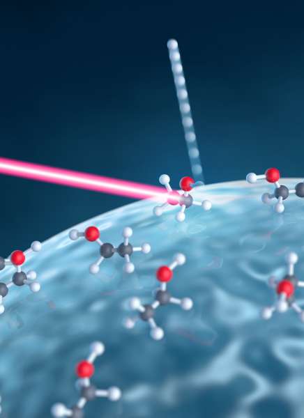 Der Nanokosmos ist ständig in Bewegung. Die Natur wird dirigiert vom Wechselspiel zwischen Licht und Materie. Licht trifft auf Teilchen und setzt Reaktionen in Gang. Elektronen wechseln ihre Position, Atome verändern sich und Moleküle werden umgebaut. Auf den Oberflächen von Nanoteilchen in der Atmosphäre können solche Prozesse erheblich beschleunigt werden. Das ist entscheidend für die Photochemie in der Atmosphäre und damit für unsere Gesundheit und das Klima. Einen solchen lichtgetriebenen, molekularen Prozess auf Aerosolen hat nun das Team um Prof. Matthias Kling und Dr. Boris Bergues vom Labor für Attosekundenphysik der LMU und des MPQ detailliert beobachtet. Die Wissenschaftler haben eine neue Methode, die Reaktions-Nanoskopie, entwickelt. Mit ihrer Hilfe untersuchten sie, wie sich Ethanol- und Wassermoleküle an der Oberfläche von Nanoteilchen aus Glas verhalten, wenn sie unter den Einfluss von starker Lichtstrahlung geraten.