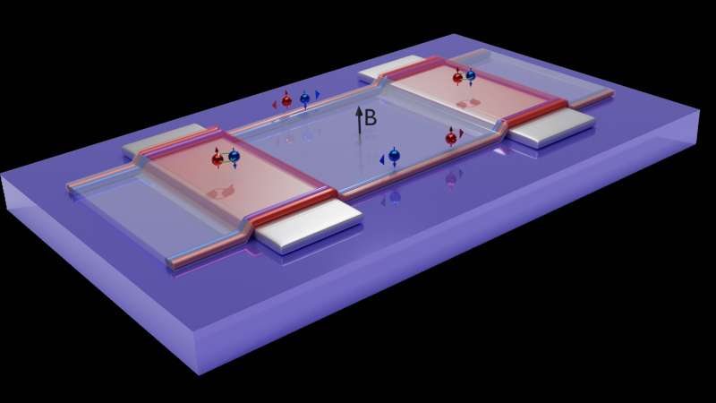 Das Team um Prof. Dr. Christian Schönenberger vom Departement Physik und dem Swiss Nanoscience Institute der Universität Basel hat nun winzige Wolframditellurid-Kristalle bestehend aus 1 bis 20 Schichten untersucht. Um das sauerstoffempfindliche Material elektrisch zu charakterisieren, arbeiteten die Wissenschaftler in einer speziellen sauerstoffarmen Box und bedeckten das Wolframditellurid mit einem anderen Kristall, das gegenüber Sauerstoff unempfindlich ist. Sie fügten supraleitende Kontakte hinzu und legten ein Magnetfeld an.