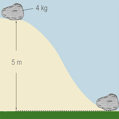 $m \cdot g \cdot \ h \ = \ \mathrm {4 kg \ \cdot 10 \frac{N}{kg} \ \cdot \ 5 m \ = \ 200 \ J}$